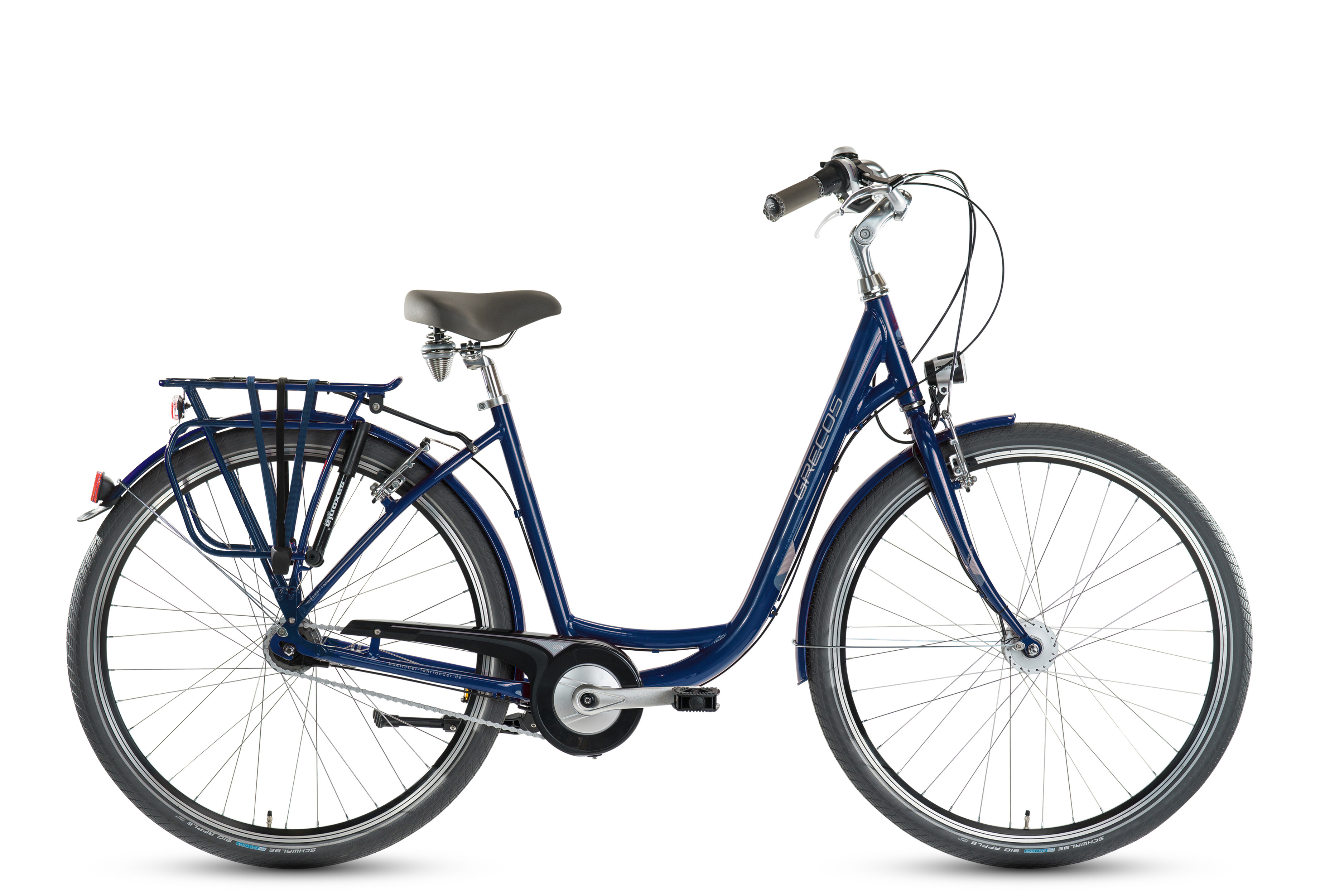 Auffällig unauffällig. Das Grecos Manhattan bietet viel Fahrgenuss im Alltag. Es ist Chic und Stylish und bewusst nicht mit Technik überladen. Souverän überzeugt es mit seiner komfortablen Sitzposition beim Gleiten durch die Stadt. Dank der kompletten StVZO Ausstattung, stabilem Aluminium Rahmen und wartungsfreien Nabenschaltung machen touren einfach Spaß. Mit der Shimano Nexus 7 Gang Schaltung können sanfte Anstiege komfortabel bewältigt werden. Wenn es etwas schneller gehen sollte, sorgen zwei